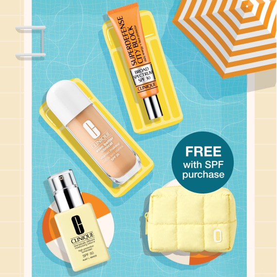 Summer in Clinique. Receive your free cosmetic pouch with any SPF purchase*.
