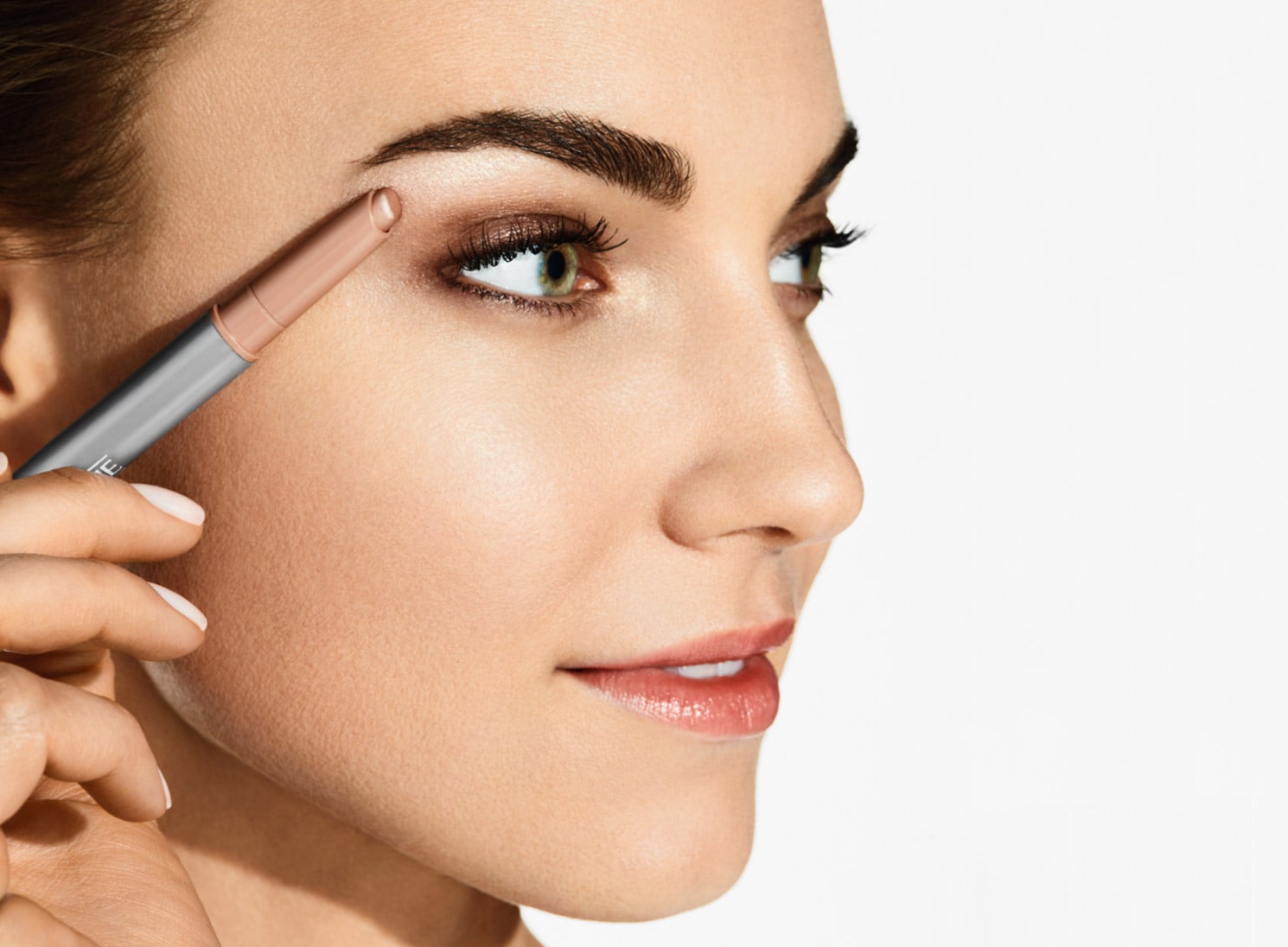 Find the starting point of your brow by aligning the Quickliner™ for Brows Eyebrow Pencil vertically with the outer edge of your nose to determine where your eyebrow should start. Mark this point lightly.