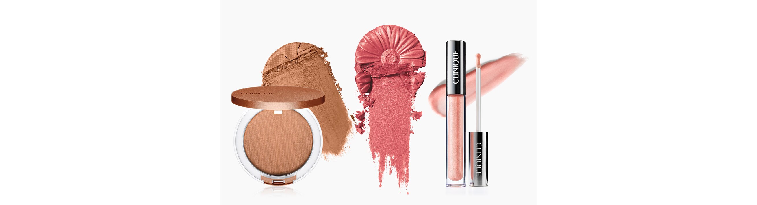 Cheek Pop™ Powder Blush in Ginger, True Bronze™ Pressed Powder Bronzer in Sunkissed, Clinique Pop Plush™ Creamy Lip Gloss in Airkiss Pop