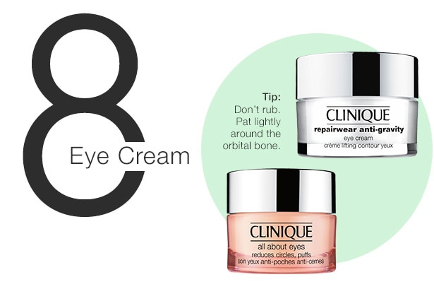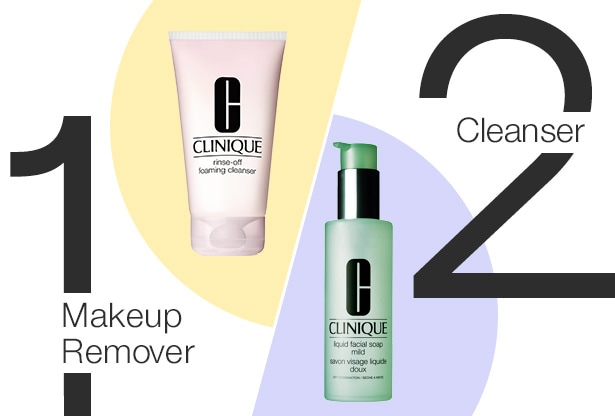 My #1 priority is thorough makeup removal with a 2- or 3-step cleansing process—one step just isn’t enough to get every last trace, especially if you’re a fan of long-wearing formulas. If you’re a makeup wipes type of gal, use a separate eye makeup remover with cotton so as to not rub your delicate eye areas with a rough cloth. Follow with a general cleanser based on your personal preference and skin type.