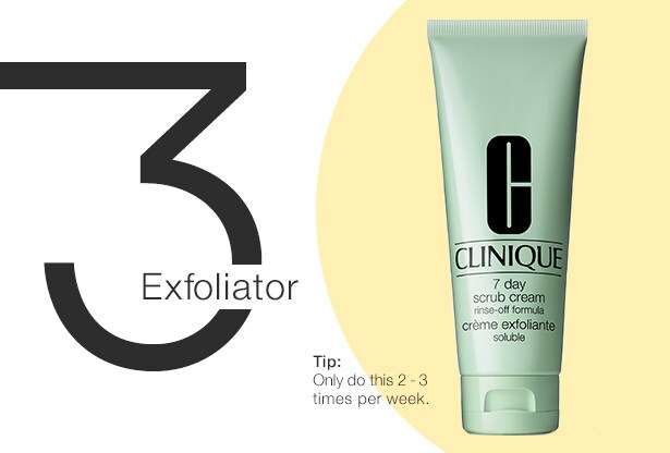 This crucial step helps you avoid a buildup of dead skin cells that can cause dullness, dryness, blemishes, and additional skin concerns. In turn, it helps your other products absorb more effectively. Since you’re exfoliating a few times a week, you want to stick with a gentle, emollient scrub like the 7 Day Scrub Cream Rinse Off Formula.