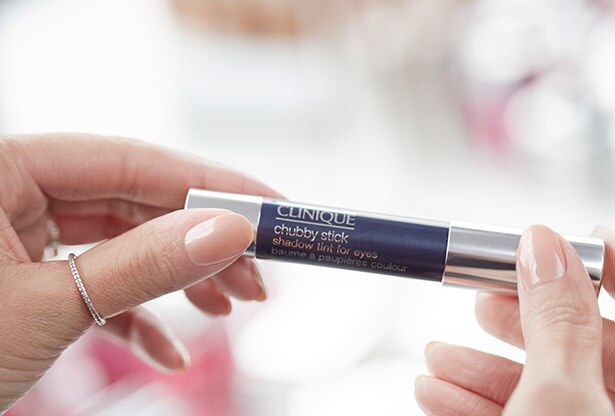 To get Andrea's look: Using a soft, fluffy shadow brush, sweep a light blue shadow from your lash line up into the crease, and along your lower lash line. Andrea blended the two lightest shades in the All About Shadow Quad in Galaxy for a unique, shimmering blue. Use the lightest shade in the eye shadow palette just under the brow to add lift and definition. Add extra dimension by softly lining your eyes with Chubby Stick Shadow Tint for Eyes in Big Blue. Make pale blue really pop with extra coats of volumizing mascara, like Chubby Lash Fattening Mascara in Jumbo Jet. The perfect complement to blue? Pink! Andrea completed her look with rosy cheeks, using Cheek Pop in Pansy Pop, and multiple coats of Long Last Glosswear in Clearly Pink.